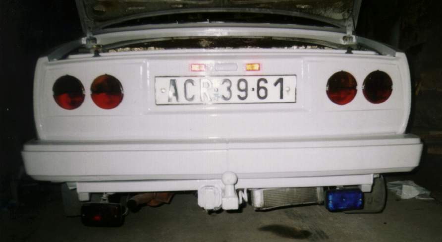 Teď už jenom přidělejte světlo zpátečky, nejlepší je když seženete tvarově stejnou jako máte mlhovku a dáte ji na stejné místo jako je mlhovka, akorát na druhou stranu ( Já koupil obě nové u Rektorise asi 75Kč/kus ) Jak jsem již psal osvětlení SPZ se dá udělat mnoha způsoby. Já jsem hledal něco co nebude moc velký, něco co tam bude především proto, aby policajti neremcaly. Nejraději bych to tam nedal vůbec. Nakonec sem tam udělal jak sami vydíte na fotce, pouze jedno takové malé uprostřed. Je sice pravda, že to neosvítí celou SPZ, ale myslím, že je to dostačující, protože když už za mnou ty policajti pojedou, tak si na mou SPZ posvítí sami (O:.