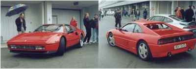 Ferrari Testarossa na parkovišti a F 328 GT a F 348 spolu s Porsche