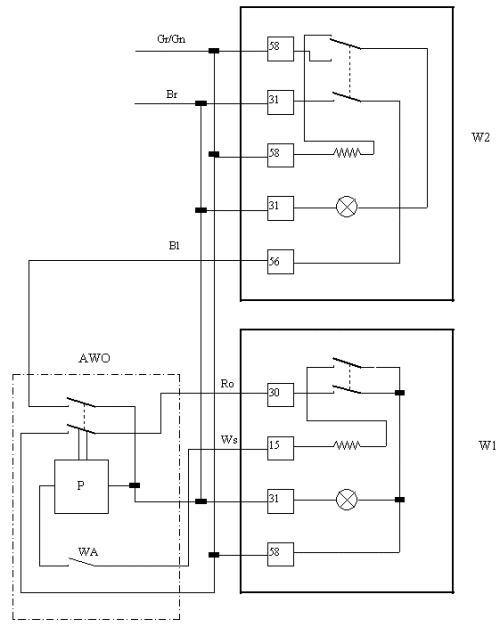 22. ledna 2001Automatický spínač osvětlení pro Škodu Felicii 1.3LXizapojeníPoužité symboly: