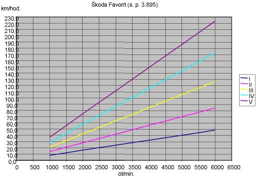 Favorit se standardně montovaly převodovky se stálým převodem 3,895