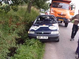 trasy spolu s dalšími posádkami zdrželi asi půl hodiny. Do cíle etapy dojíždíme
