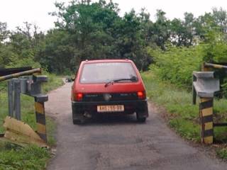 obcí Radim, první průjezd se nám stává osudným, v zatáčce před obcí se