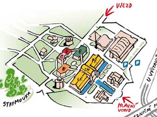 V žlutých pavilonech (LK, SH, PK) se nachází