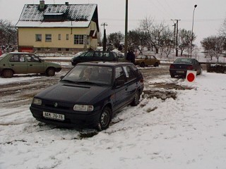 První polní cesta krátce po startu Jako průjezdky máme opisovat první písmeno z názvu vesnic, kterými projíždíme. Do následující vesnice sice přijíždíme z jiné strany než máme, ale na průjezdku to nemá vliv. V obci Luková, již tradičně jako v předchozích závodech, hledáme neexistující komunikaci a bod "K", až tentokrát jsme ho našli - na potřetí. Na kraji obce je i konec etapy a jízda zručnosti - slalom. Jede se na zmrzlé betonové ploše kolem hromady cukrové řepy. Je to dost sranda, auto si jede kam chce, přesto projíždím čistě a s osmým nejrychlejším časem. Po jízdě zručnosti následuje druhá etapa. Slepá mapa velí: druhou polní cestou doprava. No jo, ale když posádka nedává pozor, tak jak má poznat která polní cesta je ta druhá? Navigátor: "A teď jeď druhou polní cestou doprava." Pilot: "To je tahle? Nebo až tu další?" Navigátor: "Myslím že už tam jedna cesta byla, takže touhle jedem." Pilot: "Myslíš? Nebo to víš?" Navigátor: "Jo, jeď tam." Pilot: "Ale tam je nějaká zmrzlá závěj, do toho mám jet? Vždyť tam ani nejsou žádný koleje těch, co jeli před náma." Navigátor: "Jeď tam, to je tak zmrzlý, že se tam stejně žádný koleje neobtisknou." No, a tak jsem přejel tu závěj a vydal se po té šíleně klouzavé silnici. Po 3 kilometrech jízdy připomínající boj o život jsme dojeli na konec a zjistili, že to nebyla ta pravá cesta.