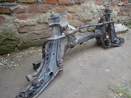 Ako prvé som si musel zohnať samotnú nápravnicu Bentler, ramená, torznú tyč, k tomu ešte aj vzperu prevodovky ktorá sa skladá s dvoch dielov. (vzpera prevodovky je na obrázku už namontovaná)