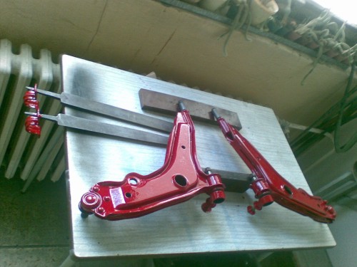 Kým som sa dostal k samotnej montáži, diely nápravy som rozobral, ošetril a natrel farbou nakoľko napr. na ramenách miestami bola povrchová hrdza.